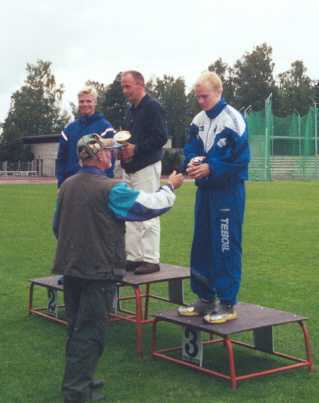 XVII Vaasa Marathon (42,195 km) 8.9.2001 3:12:48 Sijoitus M 3. / Place M 3rd Lauantaina 8.9.2001 juostiin 17. Vaasa Marathon. Tämä oli viides maratonini. Sää oli hieman sateinen, mutta kaatamalla vettä ei missään vaiheessa kuitenkaan tullut. Olo oli ehkä pikkuisen flunssainen koko viikon, ja juoksu ei ollut lähelläkään nappijuoksua. Kolmen tunnin alitus odottaa yhä itseään. Suurin syy epäonnistumiseen oli tällä kertaa (ja ehkä kahdella edelliselläkin kerralla) kengissä, jotka olivat liian kapealestiset. Oikea jalanpohja kramppasi taas puolessa matkassa, mikä pilasi juoksun täysin. Uudet lenkkarit ostin huomattavasti leveämmällä lestillä, koska päätin, etten enää saa jalkavaivoja kenkien vuoksi. Ensi kerralla paremmin. Onneakin oli matkassa, sillä sijoituin huonosta ajasta huolimatta miesten yleisen sarjan kolmanneksi, mikä lämmittää mieltä. The 17th Vaasa Marathon was run September 8th. It was my fifth marathon so far. The weather was rainy, allthough it was never pouring. I felt a bit ill the whole week before, and the race was far from perfect. I still dream about that marathon under three hours. The biggest reason for my failure this time was my shoes, which were too narrow. My right foot became sore again after half of the race has run. My new pair of shoes are much wider. I desided that my foot problems are over. At least because of my wrong shoes. Better luck next time. Well, I had some luck this time. I became third in the men's class in spite of my pour time. That feels great. |
